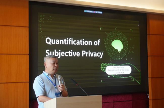 Professor Jingsha He from Beijing University of Technology, China, delivered a speech on Quantification of Subjective Privacy.